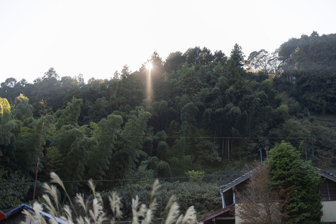 –Kominka Kamoshika is surrounded by lush trees and tea fields, with a quiet stream just a short walk away-