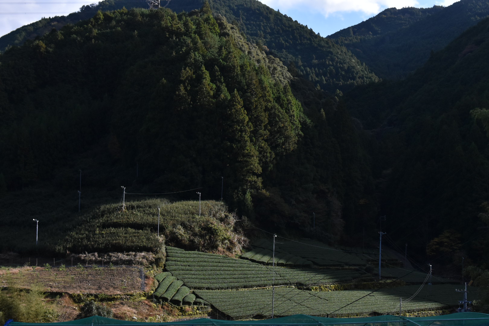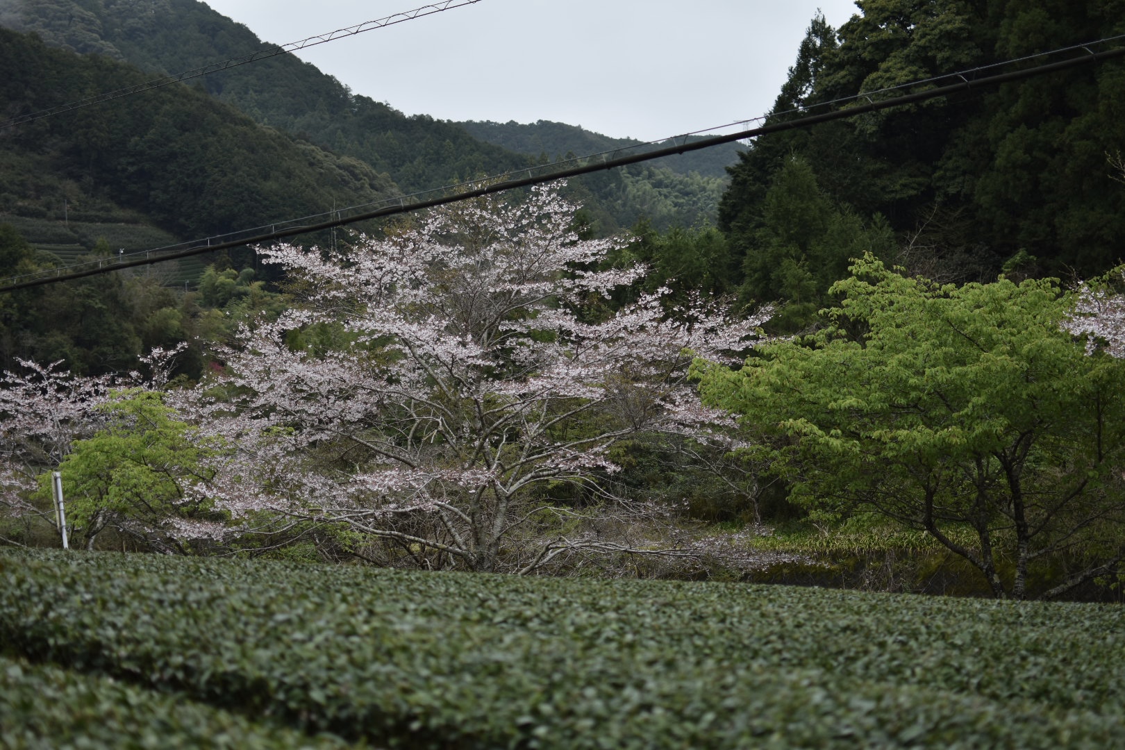 かもしかの周辺には、四季を彩る木々と静岡ならではの茶畑が広がります。