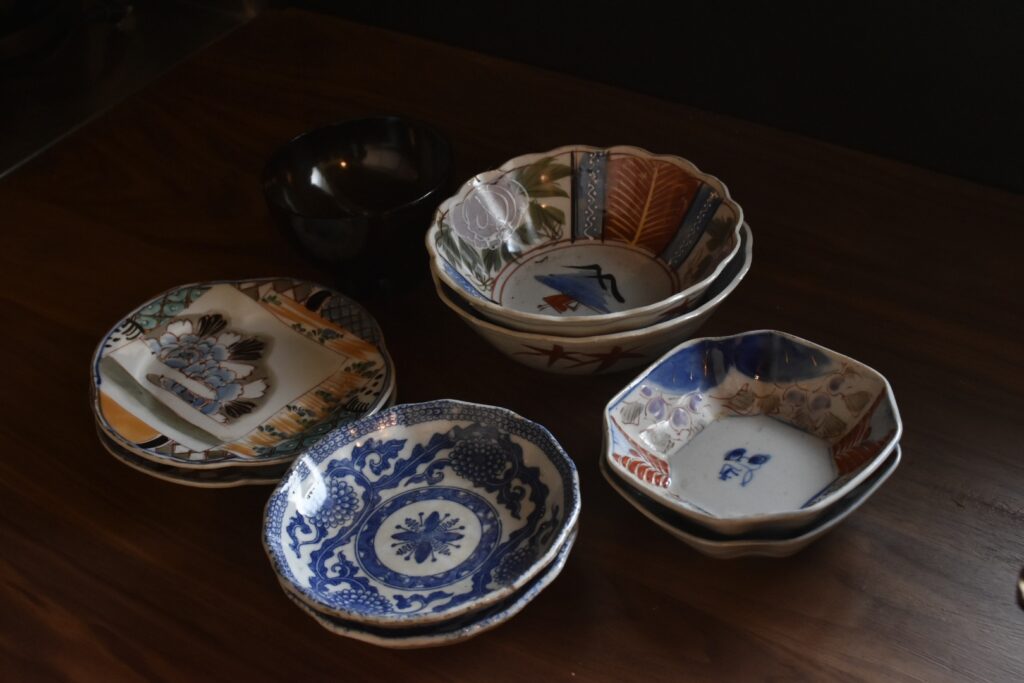お客様にお使いいただく食器は、この家に受け継がれたものや譲り受けた器たち。時を重ねた味わいが、食卓に温もりを添えます